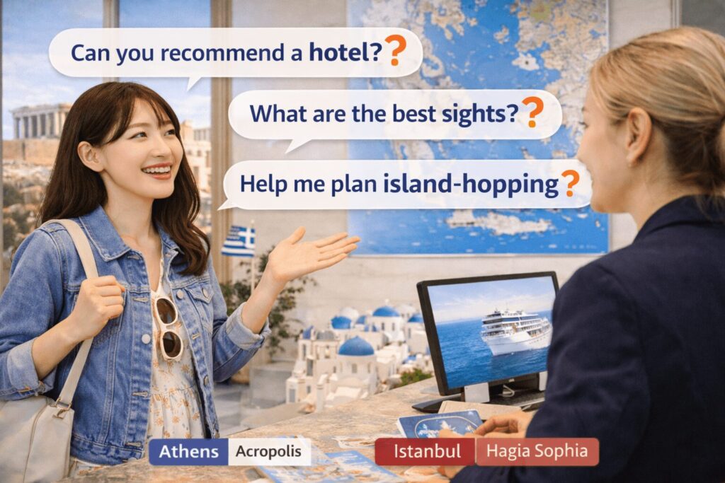 基本的なギリシャ語を覚えておくと、コミュニケーションがスムーズになります。