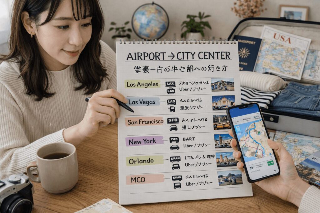 アメリカの空港から市内まではどう移動するのが安心ですか?