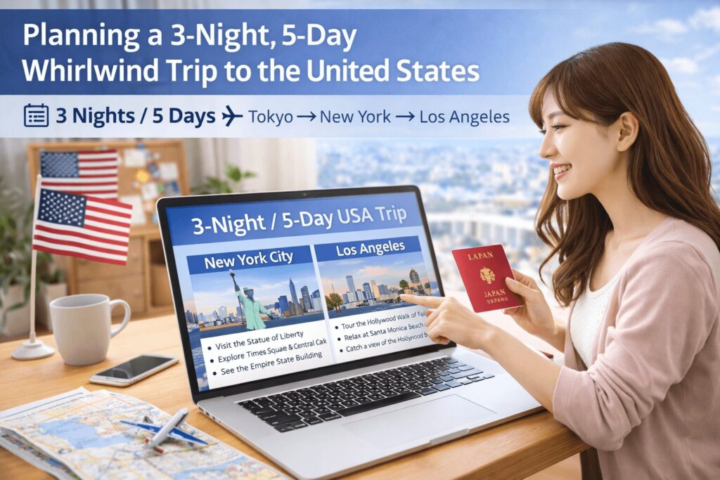 一方、3泊5日はニューヨークやロサンゼルスなど、すでに訪れたい都市が決まっている方のリピート旅行向きです。