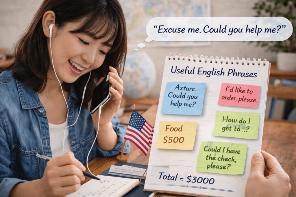 最低限のフレーズをメモして持ち歩くとさらに安心。