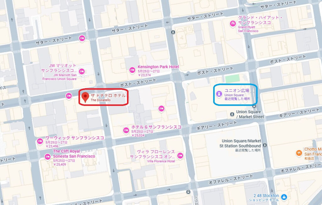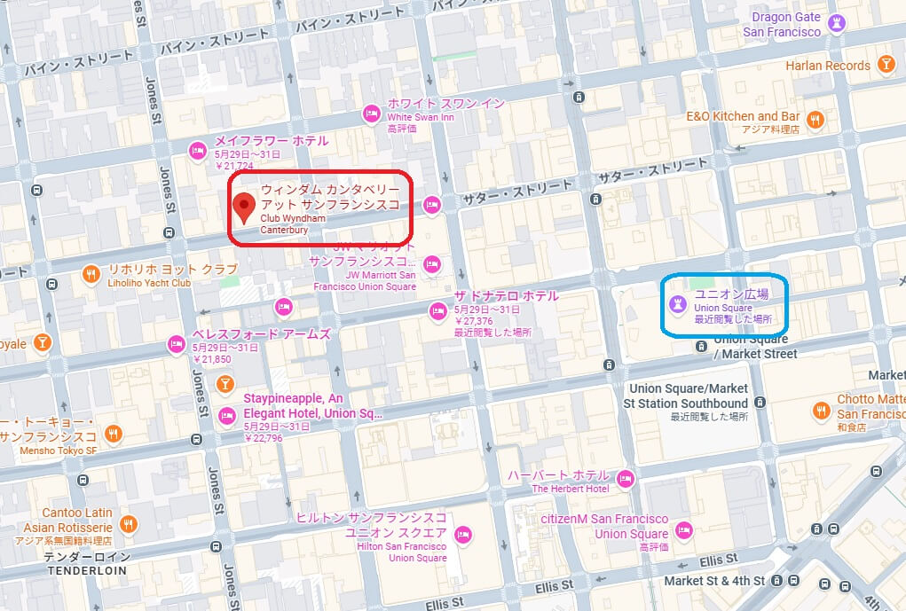 <ホテルの場所>ユニオンスクエアから徒歩約5分