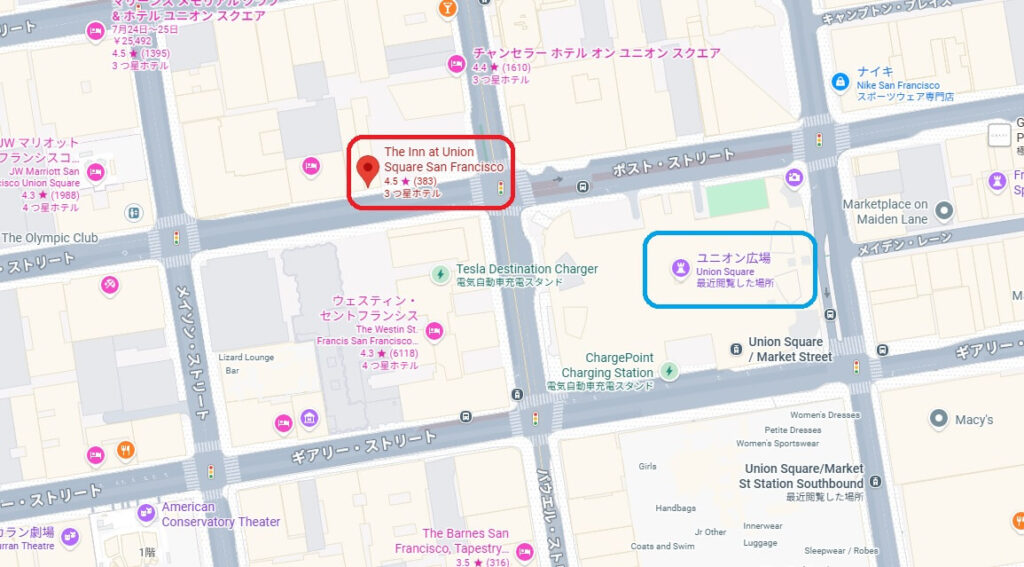 サンフランシスコを旅する際は、まずユニオンスクエアを押さえておくことで、効率よく街を楽しめるようになります。