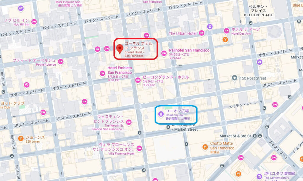 • 立地:ユニオンスクエアから徒歩約5分のノブヒル地区。静かな環境ながらユニオンスクエアへ徒歩圏内
