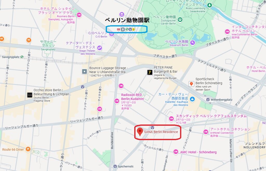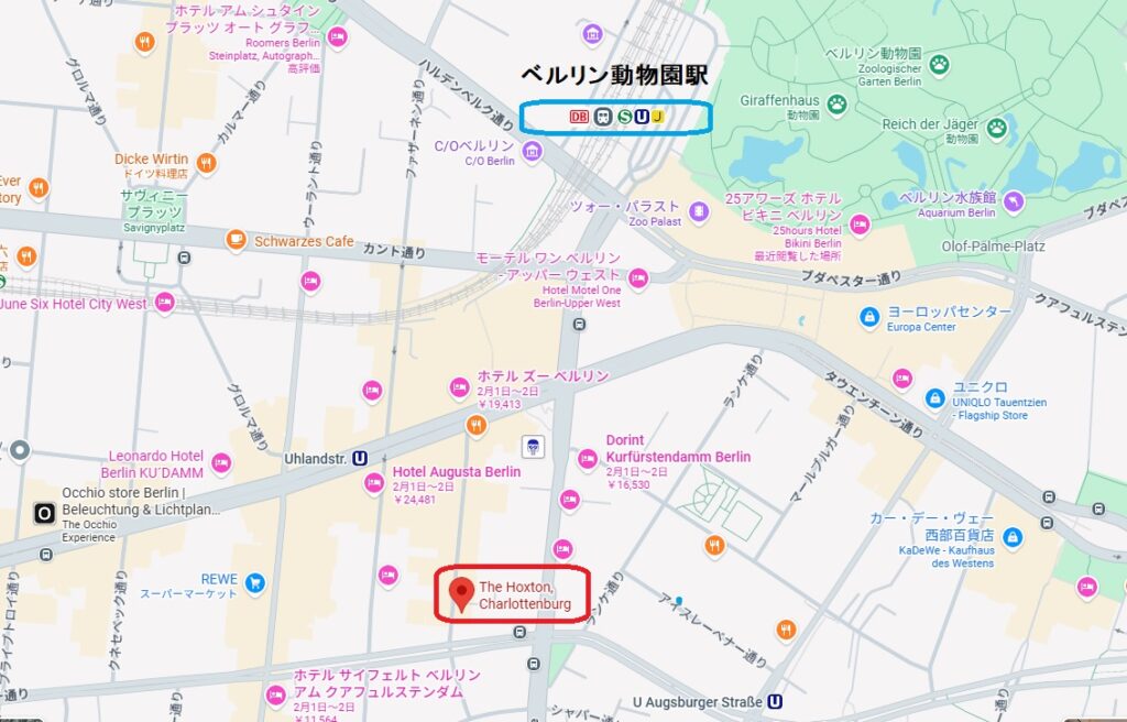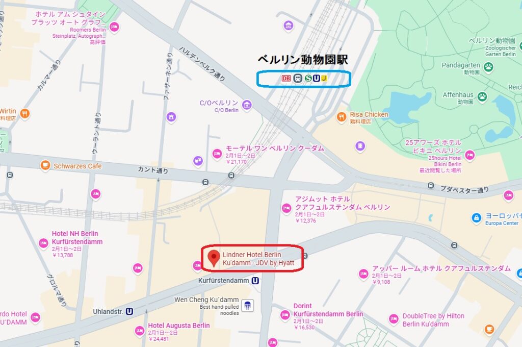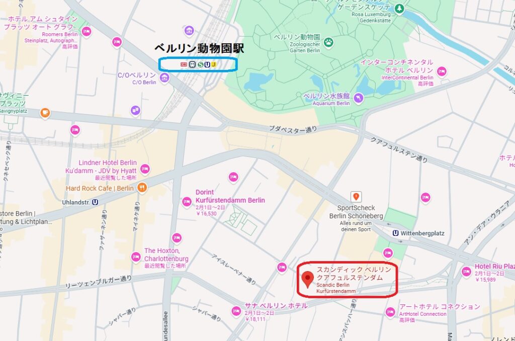 <ホテルの場所>動物園駅(Zoologischer Garten駅)から徒歩約12分