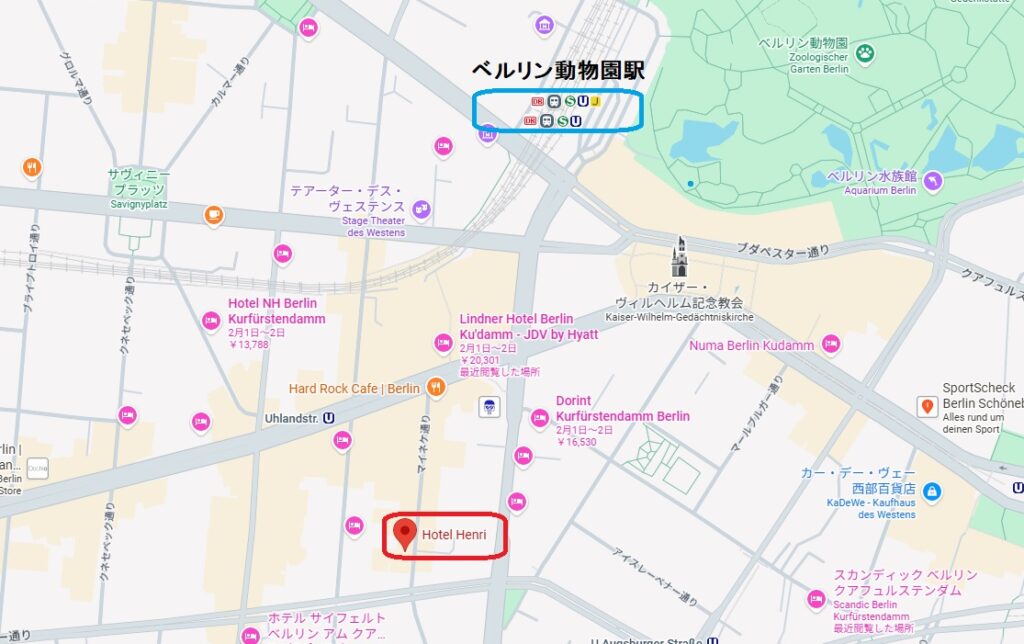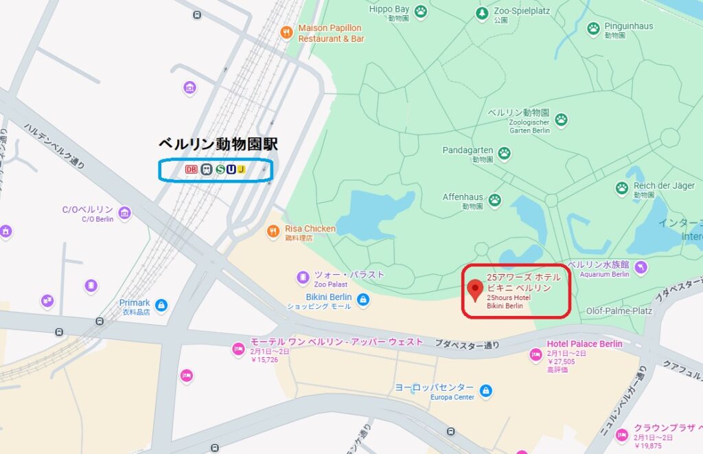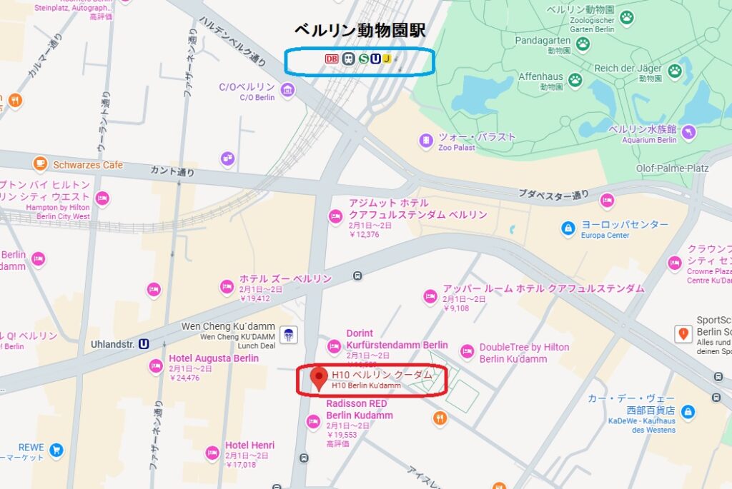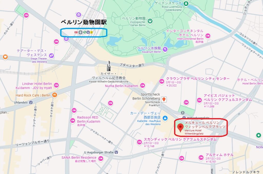 <ホテルの場所>動物園駅(Zoologischer Garten駅)から徒歩約15分