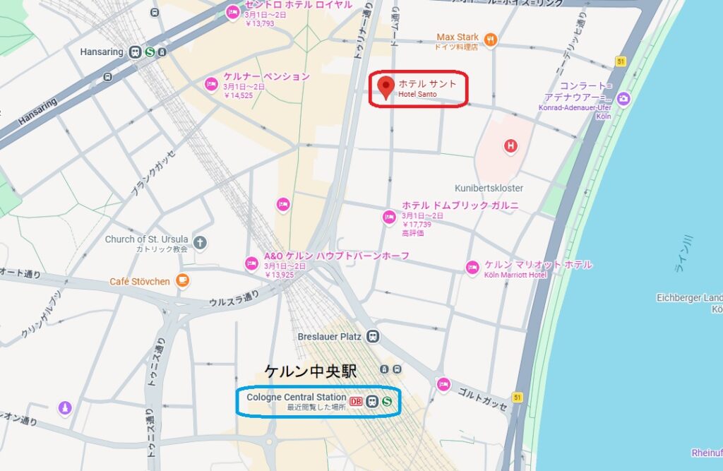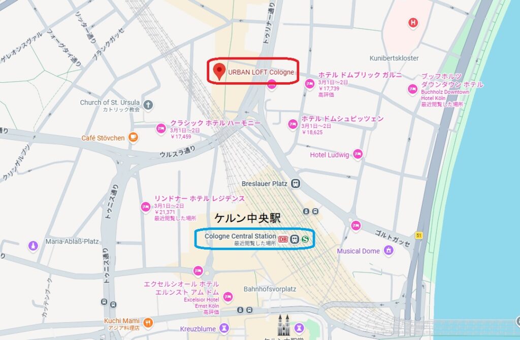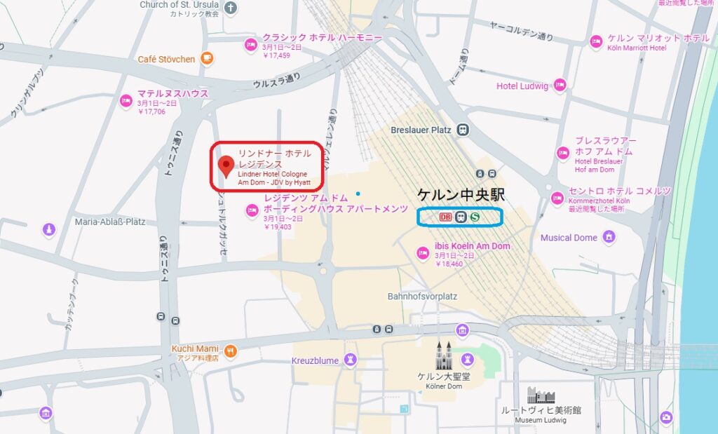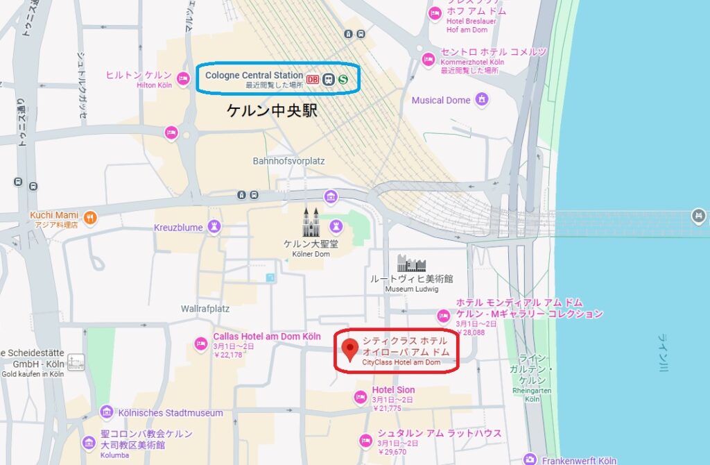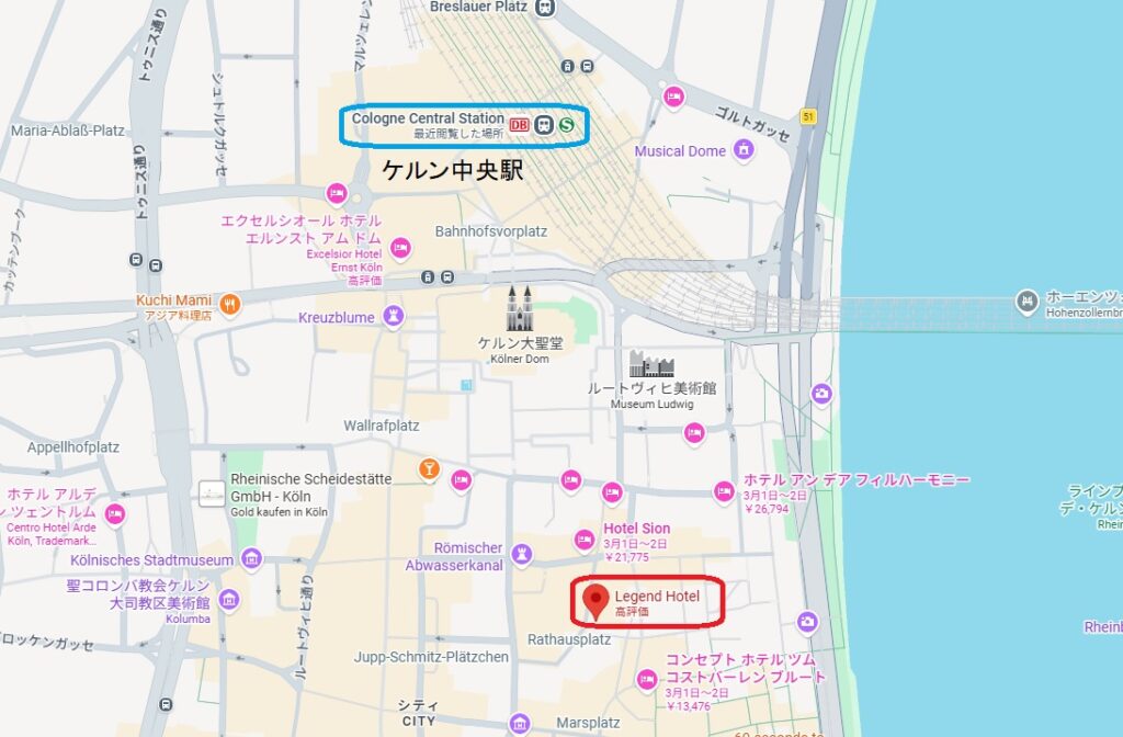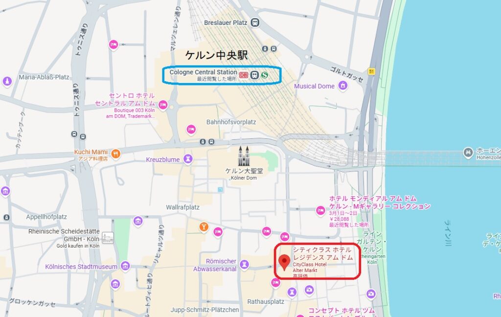 <ホテルの場所>ケルン中央駅から徒歩約5分