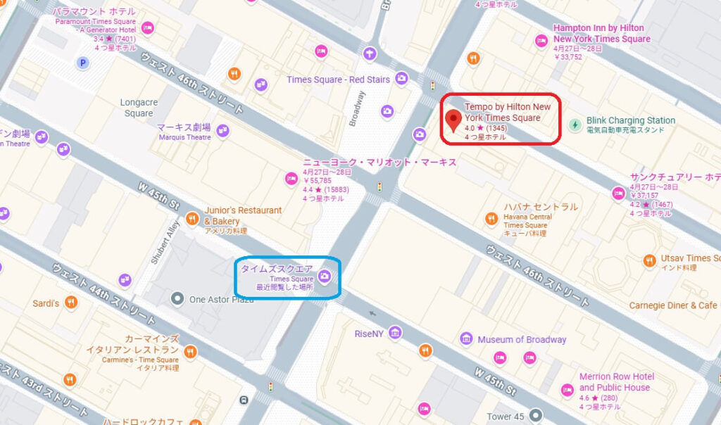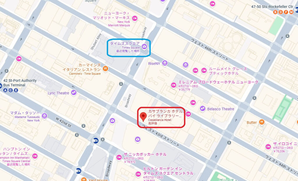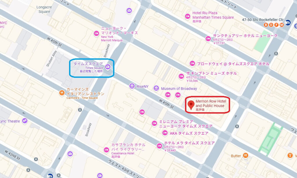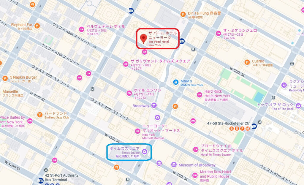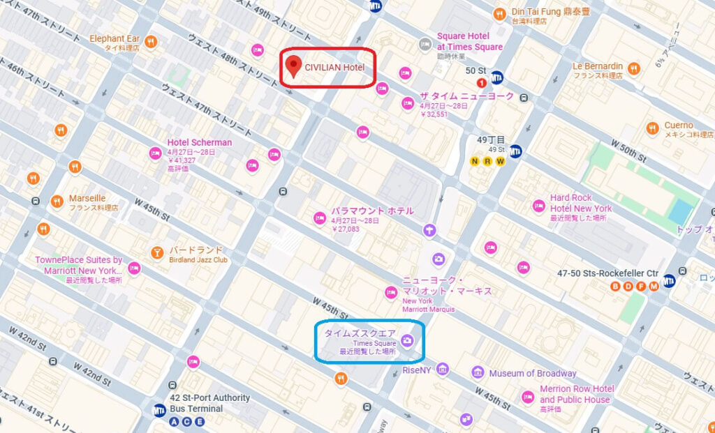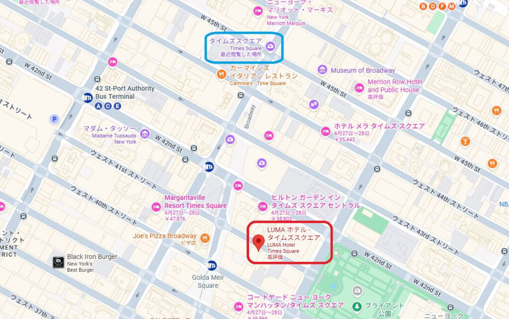 - タイムズスクエア徒歩圏の便利なホテルに泊まりたい方