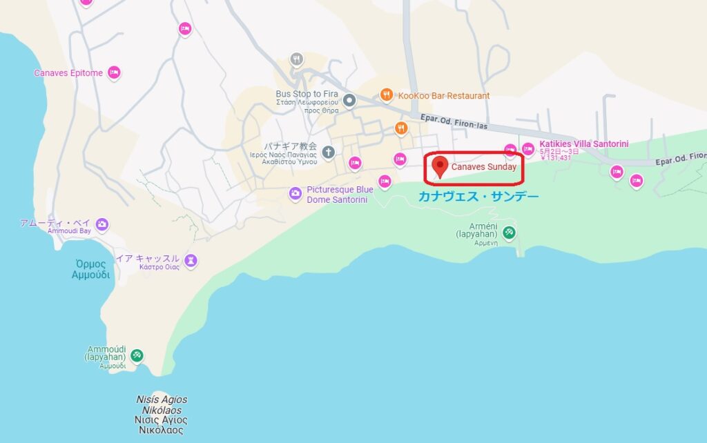 イア(Oia)地区はサントリーニ島北西部(島の端)に位置しています。
